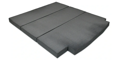 Dual hinged tri-fold design with detachable double zippered sections for versatility and personalized use. Contoured corners for perfect fit at rear of van. Fits Chevy, Ford, GMC, Mercedes-Benz, Freightliner, RAM and many more. 5 inch thick 4-layered foam formula for ultimate comfort. Soft upper layers with cooling tech memory foam insert and firm lower layer for support. Soft-to-the touch polyester top fabric creates added comfort.